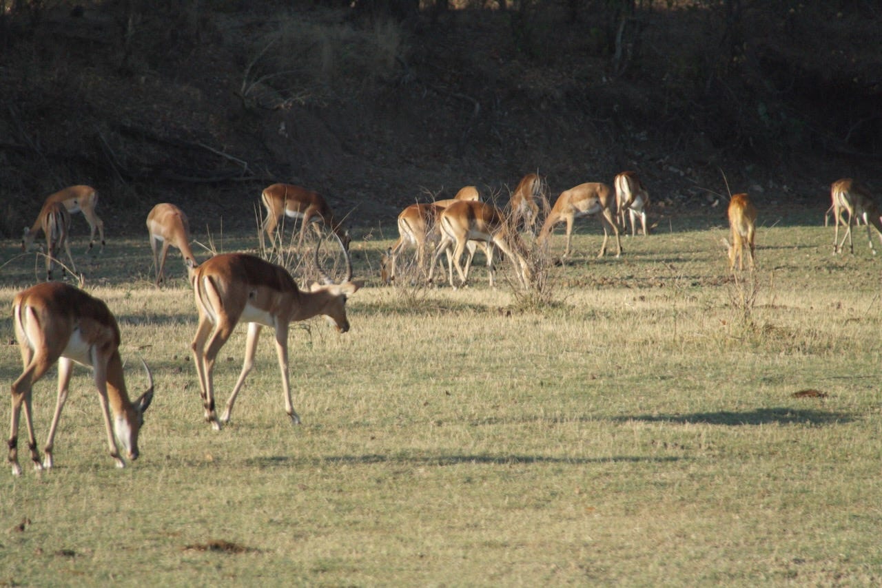 Fatigue? What fatigue? Our induction into the bush came under the light of the Zambian moon, which was edging towards fullness. A second guide shone a spotlight into fields, receiving back the reflective glare of resident eyes. “Impalas,” Manda relayed. Our thrill over these creatures elicited a laugh from Manda. “You’ll see a lot more of those before this trip is over.” Indeed, the local joke was these graceful creatures with a natural M on their hindquarters were considered the McDonald’s of the wild — fast meals for carnivores.