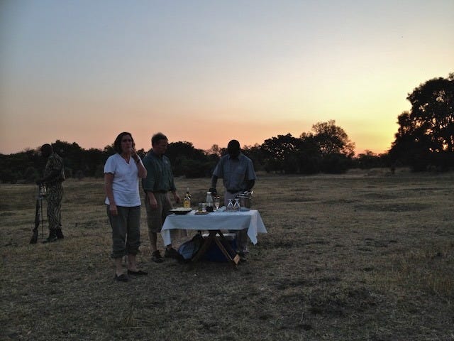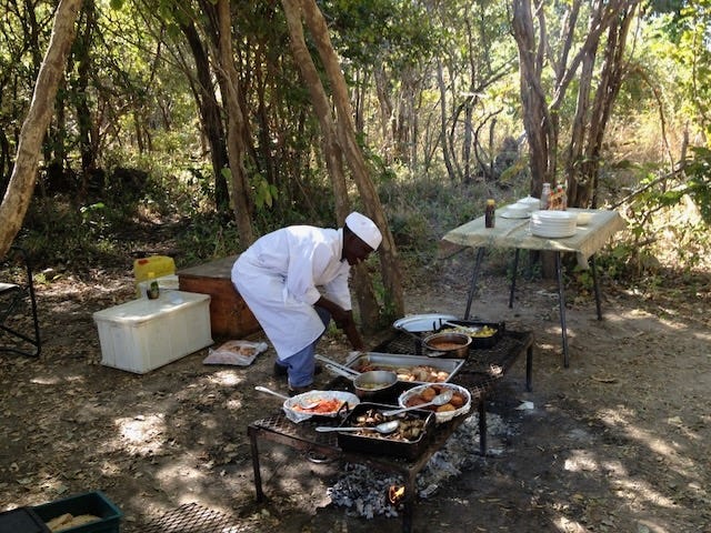 Mornings at The Bushcamp Company camps begin at 5:45 a.m.. Guests convene around a wood fire, nodding over cups of chicory-laced Zambian coffee, waiting for the caffeine to kick in. Once it does, continental breakfast lures. No boxed pastries here. Fresh baked bread is toasted over a small grate, hot porridge waits to warm bellies, muffins still hot from the oven tempt in a basket.