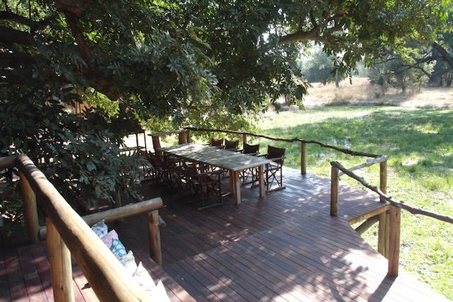 All too soon, the flight ended with a bumpy landing in a field. Upon disembarking, Manda pointed to the plane’s tire, now flat. The pilot would be accompanying us to Bilimungwe. There were no mechanics to come to the rescue. This was the bush, after all. The true bush. We were now in the thick of it. Speaking to this was the fact that we passed no villagers or vehicles en route to Bilimungwe. Instead, the field leading to the camp’s entrance was filled with impalas, warthogs and baboons. An urge to hop from the vehicle and participate in what was surely nature’s recess came over me. Alas, we continued over a crest and under a giant mahogany tree, where Bilimungwe’s staff waited to greet us.