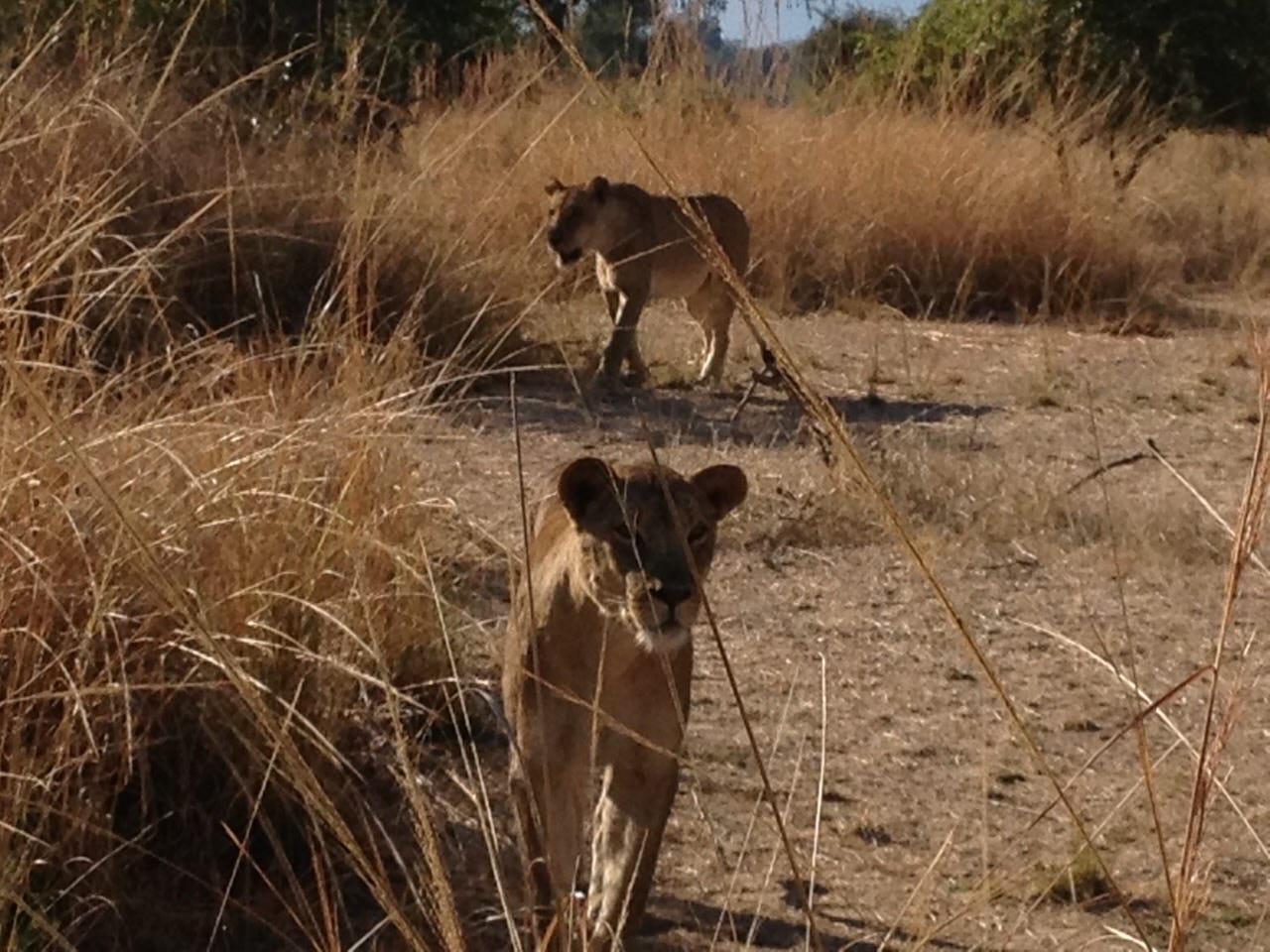 As night fell, there was the now familiar glittering of eyes in the dark — a group of impala here, a genet there. A call on the radio informed, “Manda, a group of four lionesses are at the camp entrance.” The Land Rover pulled a 360 and headed back towards Bilimungwe. There, in the dark, two lionesses and two teenage lions were napping directly in the driveway. We sat in the truck and watched for a while, awestruck by their magnificence.